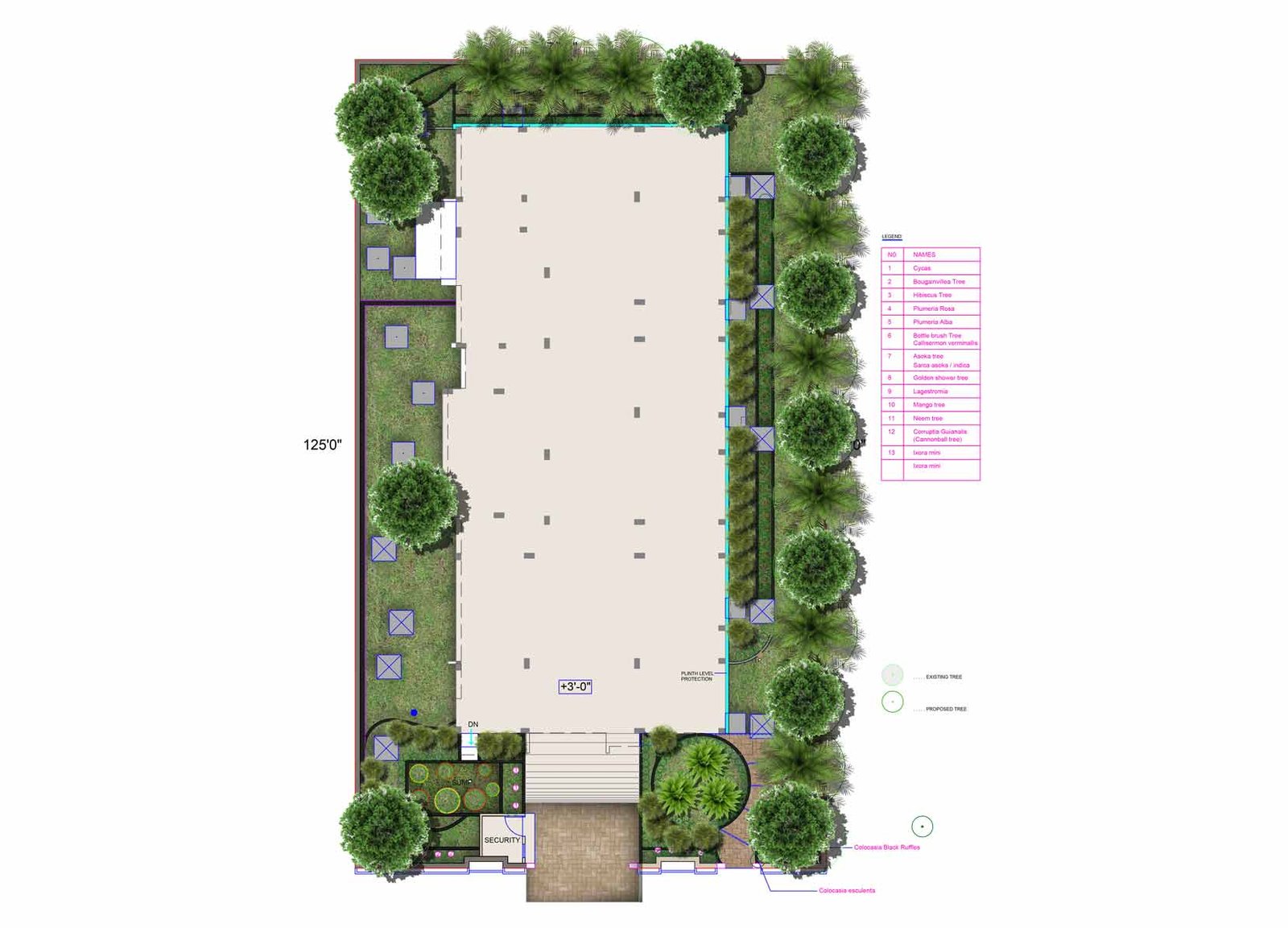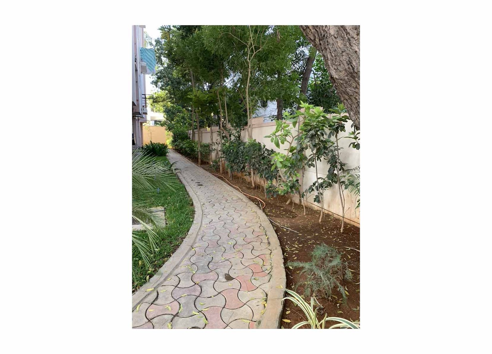JA’s Residency is an apartment complex situated in a quiet neighbourhood locality. The landscape design was focussed in creating an exterior compound wall detail to match the elevation and provide the apartment residence with sufficient walking space for their daily routines. The design incorporates extensive planting and creating a green focused design. The planting also features using fruit trees a vegetable garden for the usage of the residents and native planting. The native planting was designed to reduce the extensive use of water for the planting purposes. JA’s Residency at Madurai