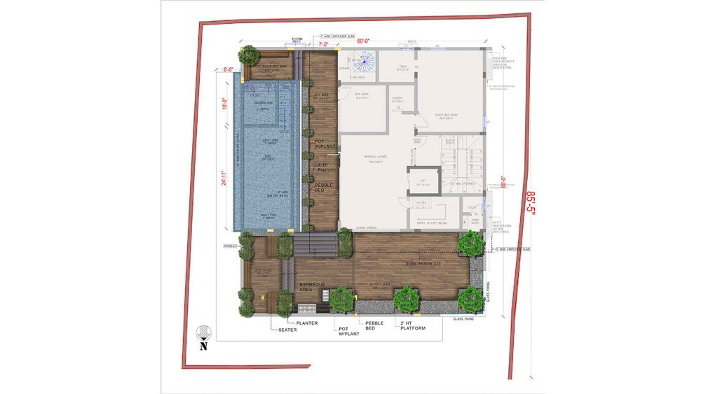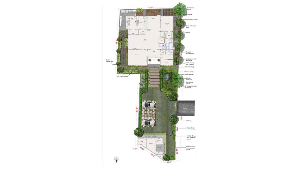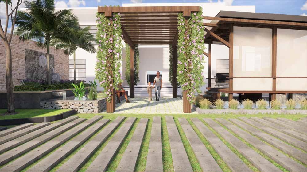 This residence is large residential villa of 12,000 sq. Ft designed in the heart of the temple city. The architectural style features using of contemporary materials & design styles. The landscape focuses on the juxtaposition of spaces between the residence and the exteriors to make it inviting and draw the attention of the view outside. The landscape is designed to complement the architectural style and be in-sync with the design. It doesn’t take away or stand out on its own. It’s design to be in harmony. landscape areas features neatly designed & designated landscaped spots which make it both usable & aesthetic. Residential Villa at Madurai